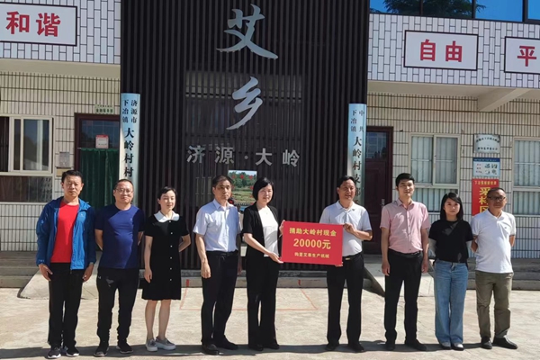 活动现场,任贵清主委代表民建济源市委会捐赠2万元现金用于帮助该村购置艾草打捆机,提高艾草生产效率,提升艾产品品质,进一步推动大岭村的经济发展,让小小艾叶发挥最大效能助力乡村振兴。