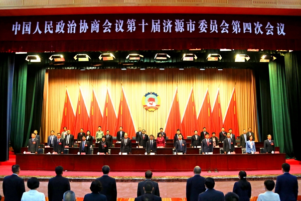 5月14日下午,圆满完成各项议程后,中国人民政治协商会议第十届济源市委员会第四次会议在行政区会议厅胜利闭幕。