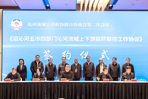 会议期间,与会人员先后到武陟县老龙湾险工、杨庄改道纪念亭、沁河入黄口、嘉应观黄河文化博物馆等地,实地考察沁河武陟段生态保护和发展情况。会上,焦作市副市长宗家桢介绍了焦作市经济社会发展和生态文明建设情况,与会人员观看了专题片《沁河 一条美丽幸福之河》,五市政协分管副主席围绕“建立健全沁河流域上下游联防联控机制,防范重大安全和生态环境风险”主题协商交流,五市有关部门负责同志共同签署《沿沁河五市四部门沁河流域上下游联防联控工作协议》。
