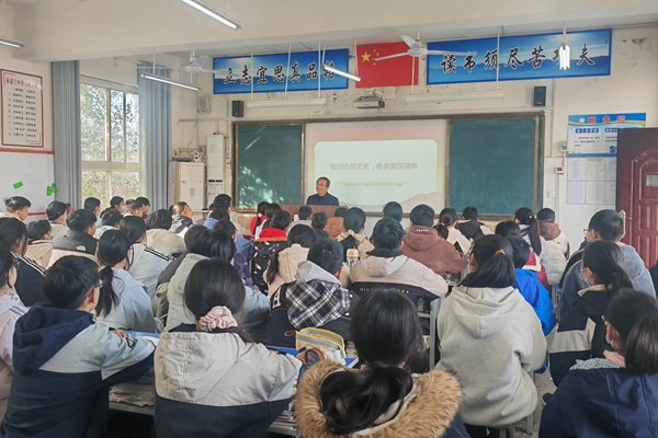 课堂上,苗圃从“回望烽火,看清民族抗争的来路”“致敬英雄,读懂爱国精神的内核”“少年担当,传承永不褪色的初心”三个方面展开讲解,用一个个鲜活的事例,一张张感人的照片,为大家讲授了一堂精彩的思政课。