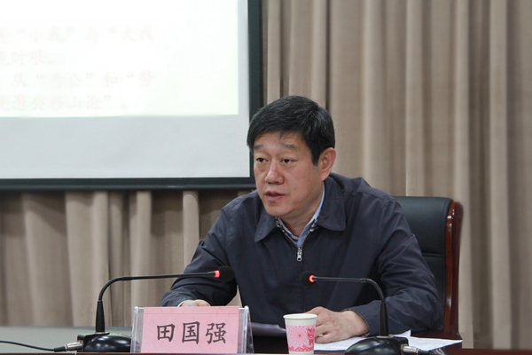 田国强结合“愚公移山”这一原发于济源的宝贵精神财富,以党的百年奋斗的四个历史时期和四次伟大飞跃为脉络,系统梳理和深入挖掘了愚公移山精神的发展历程和时代内涵,指出愚公移山精神在新民主主义革命时期体现为“下定决心,不怕牺牲,排除万难,去争取胜利”的革命精神,在社会主义革命和建设时期体现为“重新安排河山、改造中国”的奋斗精神,在改革开放和社会主义现代化建设新时期体现为“解放思想、锐意进取、敢为人先”的创新精神,在中国特色社会主义新时代体现为“勇于追求和实现梦想”的执着精神、“咬定目标、苦干实干”的担当精神。在讲到中共七大毛泽东发表愚公移山闭幕词时,田国强说,以史为鉴,开创未来,党的第一个历史决议为党的七大胜利召开奠定了坚实基础,要认真学习领会党的十九届六中全会通过的关于党的百年奋斗重大成就和历史经验的决议,从百年党史中汲取奋进力量,坚决拥护“两个确立”,做到“两个维护”,以优异成绩迎接党的二十大胜利召开。