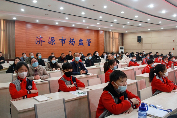 12月21日,示范区政协工委主任、市政协主席田国强到示范区市场监管局为联系单位的党员领导干部和济渎路学校的学生讲党课与思政课。