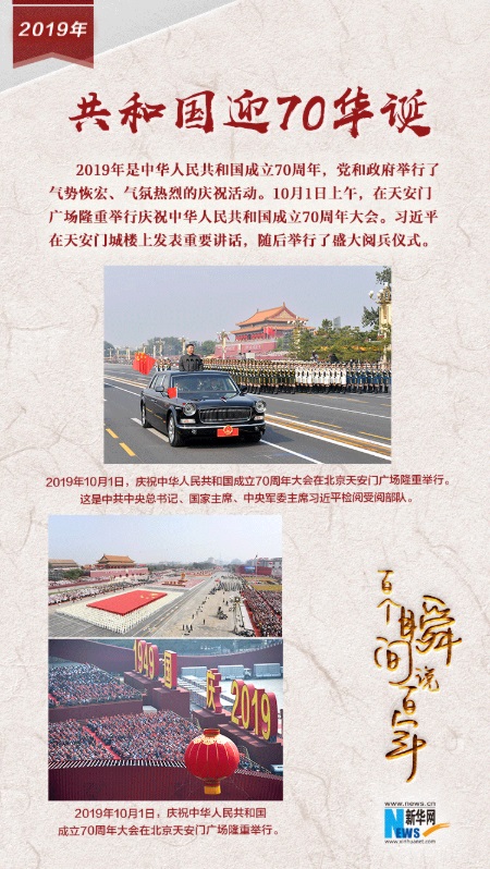 2019年是中华人民共和国成立70周年,党和政府举行了气势恢宏、气氛热烈的庆祝活动。